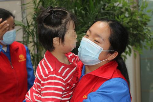志愿者們或抱起可愛的孩子,和他們說話,或圍成半圓形,和他們對(duì)拍皮球、或蹲坐在地上,給他們講故事,接過他們手中的芭比娃娃,教他們梳理頭發(fā)......,孩子們歡快幸福的模樣,不斷觸動(dòng)著志愿者的心靈。