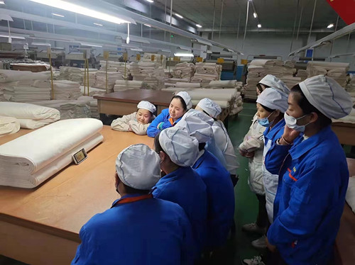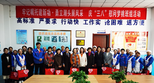 花香漸濃,微風(fēng)漸暖,遠(yuǎn)山如黛,春水含情。在第114個“三八”國際勞動婦女節(jié)來臨之際,咸陽紡織集團(tuán)工會用心用情,認(rèn)真謀劃、統(tǒng)籌安排,開展了形式多樣、豐富多彩的系列活動。 活動一:牢記囑托建新功 勇立潮頭展風(fēng)采,省市總工會慰問趙夢桃小組 3月7日上午,陜西省總工會女職委主任,省婦聯(lián)兼職副主席葉璐一行,在市總工會黨組副書記、常務(wù)副主席張靜等陪同下,來集團(tuán)公司看望慰問趙夢桃小組組員和歷任組長、夢桃老姐妹,向大家送上節(jié)日禮物,真摯表達(dá)“娘家人”的關(guān)懷和祝福。
