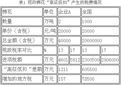 舉例:以一家年用棉量為2萬噸的棉紡企業(yè)A為例,1噸原棉按平均采購價2萬元(含稅)計算,全年棉花采購費用總計約為4億元,按13%稅率計算進項稅款為4601萬元,而如果按17%稅率計算進項稅款為5812萬元,稅率差價達1211萬元,由于相應(yīng)的以流轉(zhuǎn)稅為計征依據(jù)的城建稅及附加等地方稅種要增加約157萬元,這對于屬于微利行業(yè)的企業(yè)來說,顯然是一筆不小的費用,大大增加了企業(yè)的成本。